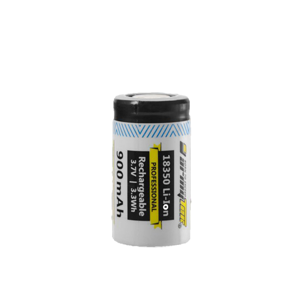 Unprotected 18350 Li-ion battery from Armytek with a capacity of 900 mAh. 3.7V.