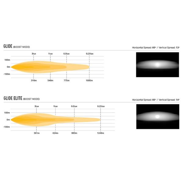 The Lazer Glide Elite is a new-age auxiliary light panel with a low profile, fierce performance and high-quality combined light pattern. Its unique design and exceptional lens structure bring a level of showiness to the table that has not been seen in the auxiliary light market before. In addition to its unique design language, the Glide Elite is equipped with, among other things, a neutral 5000K color temperature and two different power modes, which allow the use of both a power mode intended for road traffic and a power mode that releases all the light output. In the unlimited E-Boost mode, the lamp's powerful LEDs produce a light output of 8012 lumens, according to the manufacturer, and when such performance is combined with highly reflective vacuum metallized reflector surfaces, a combined light beam with a range of up to 624 meters (1 lux) is created, which illuminates both far ahead and wide to the sides of the road.