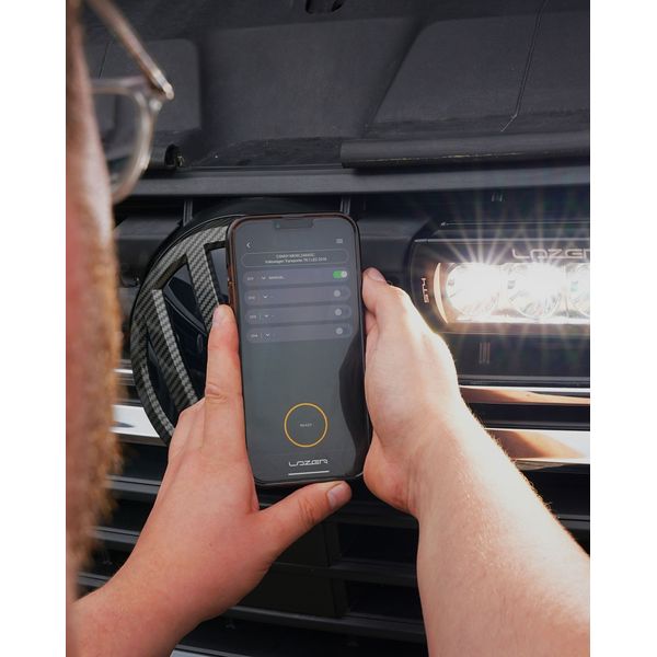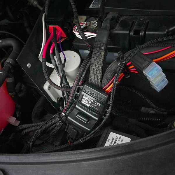 The Lazer CANNY Interface is a switching relay mounted on the vehicle's CAN bus that picks up an additional light from the bus. The system consists of a Canny Dongle, a wiring harness and a mobile app. The app provides brand and model-specific wiring instructions, and after installation, any updates, such as changes to CAN "recipes" made by the vehicle manufacturer, can be conveniently performed via the app using Bluetooth. The wiring harness of the kit includes pre-wired wires (blue and yellow) for CAN Hi and CAN Lo, a fuse for the battery positive connection and a ground wire. The wiring harness has a total of four outputs that can be programmed to respond to different inputs, such as auxiliary light, auxiliary parking light, reversing light, warning light, etc. However, the CANNY Interface wiring harness only provides excitation current to the lights, meaning that a separate relay wiring harness is also required for installation.