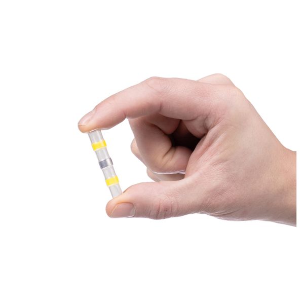 A moisture-resistant connector equipped with tin and an adhesive shrink sock, e.g. for the wiring of additional and work lights. Suitable for 4-6 mm² wires, the connector is heated over the joint.