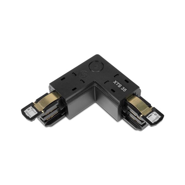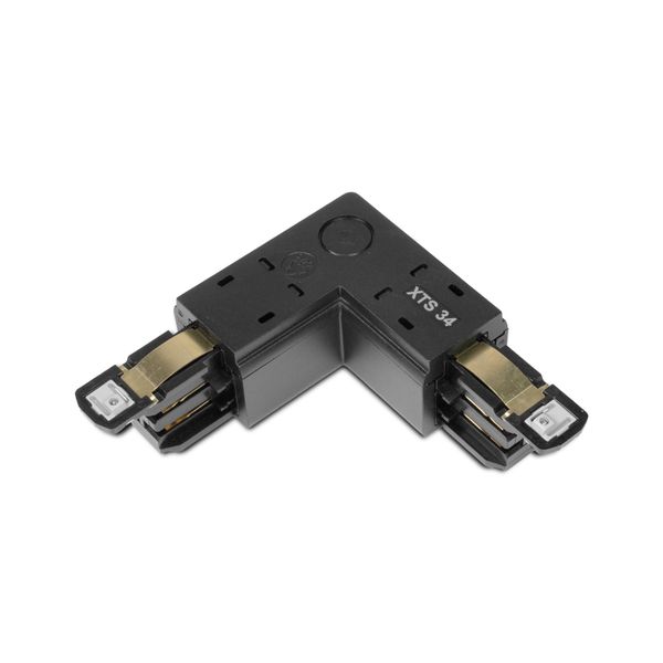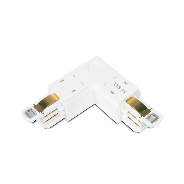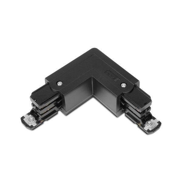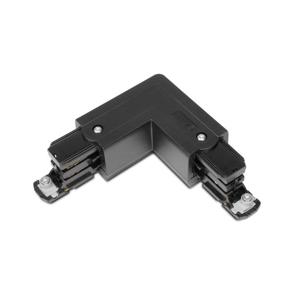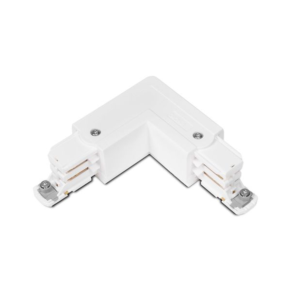 Global Trac Pro for 3-phase lighting track with combined angle connector and feeder box. The connector allows both power supply and 90° angle to the light rail. Available in black or white, right or left handed.