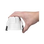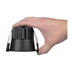 Round downlight with an aluminum frame with anti-glare design, narrow beam and high color rendering index for both dry and humid spaces, both indoors and outdoors. Adjustable color temperature, power 10W / 640 lm, IP44 rating. Available in black or white!