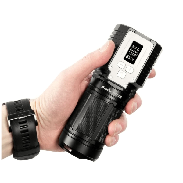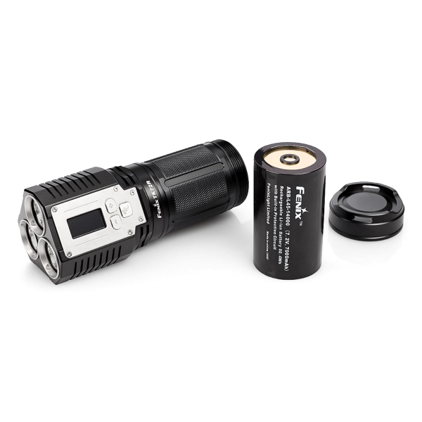 The lamp's smart OLED display shows the selected power, remaining operating time and battery capacity. Thanks to the intelligent display, the user is constantly aware of the most important performance values during use. The TK72R works with a powerful Fenix ARB-L14-14000 (7.2 V 7000 mAh) Li-ion battery (included in the delivery), which is charged via the micro USB charging port on the lamp.