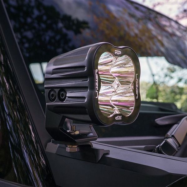 Lazer A-Pillar Holder is a mounting kit for Toyota Land Cruiser 250 SUVs from 2024 and newer, which allows you to attach work or auxiliary lights to the A-pillars of the aforementioned vehicle. The model-specific quick-release mounting kit offers a safe and easy way to install the lights on the vehicle, and because the brackets utilize the mounting points already present in the vehicle's hood hinge, there is no need to drill any additional holes in the car. This makes installation easy and the end result is bound to be impressive!