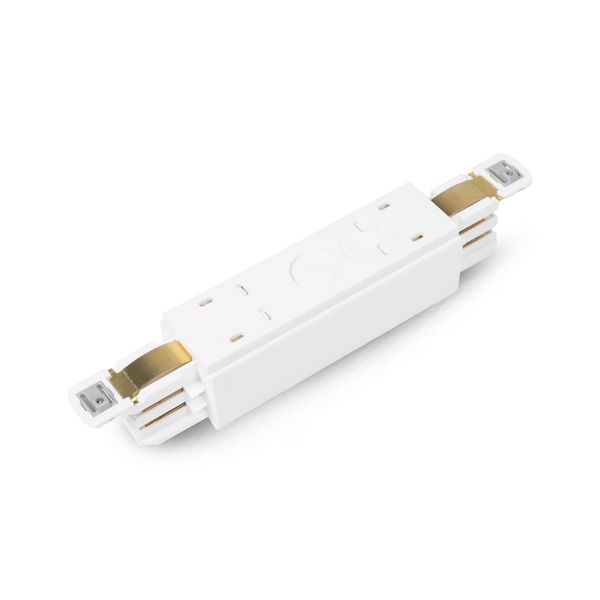 An input box that connects two light tracks together and provides power into middle of the track. Available in black or white.