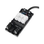 AGGE Junction Box is a junction box with spring terminals, which allows for easy daisy chaining of lamps or transformers, for example. Two MMJ cables can be fed into the box (one supplies power, the other takes it to the next device/lamp), and from its other end a ready-made 15 cm long cable with straight wires for powering the device or light comes out. Both ends are equipped with strain relief. The spring terminals make connection quick.