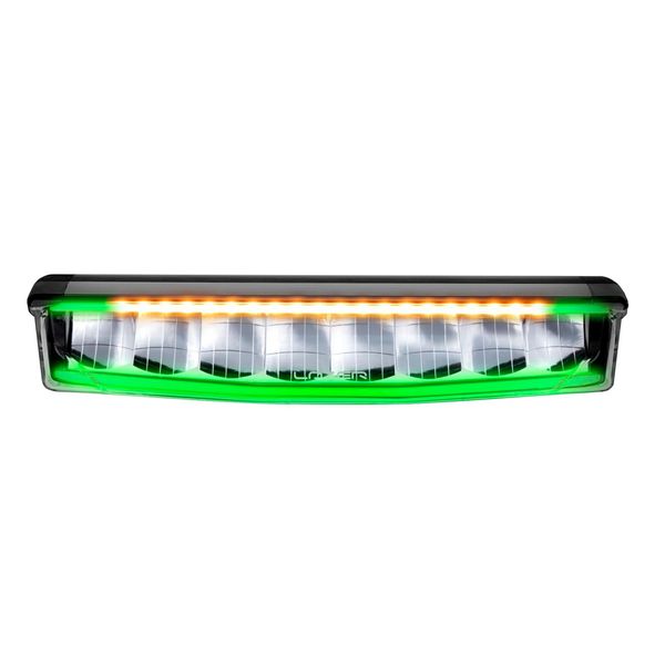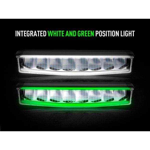 A small but powerful auxiliary light featuring a stunning design, an R65-approved warning light, two different power modes, and green and white position lights, specifically for the needs of heavy vehicles. The light features a unique Welcome mode and an extremely easy-to-use Flash-to-Dim function! Stated light output 6800 lm, range 524 m @ 1 lux.