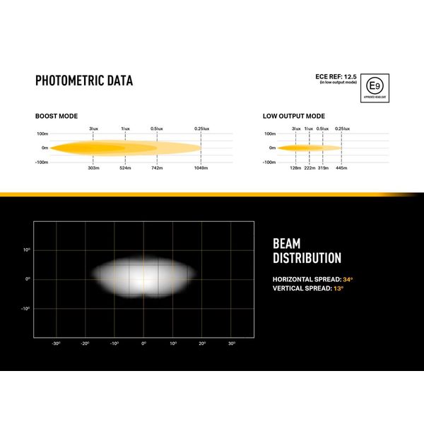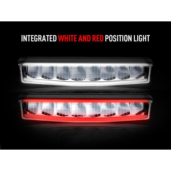 A small but powerful auxiliary light featuring a stunning design, an R65-approved warning light, two different power modes, and red and white position lights, specifically designed for the needs of heavy vehicles. The light features a unique Welcome mode and an extremely user-friendly Flash-to-Dim function! Specified light output 6800 lm, range 524 m @ 1 lux.