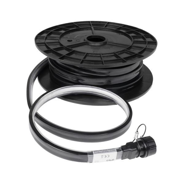 Both ends of the LED strip have a contact cap, one of which can be connected to a power cord and the other end can be connected further with another strip, if necessary. You can buy either just one LED strip or a complete set, which comes with a 170 cm long power cord. If necessary, the power cord can also be purchased separately: Power cord AGGE, 170 cm. The strip can be extended up to one hundred meters, or 1200W, so that a larger area can be illuminated at once.