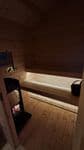 According to sauna regulations, when installing in a sauna, the strip must be installed at a maximum height of 1 m. Based on our experience, the AGGE wet room strip can also be installed at the height of the backrest without the strip's lifespan being reduced. No electrical devices other than the heater's own (e.g. temperature sensor) may be installed above the heater or at a distance of less than 0.5 m from it.