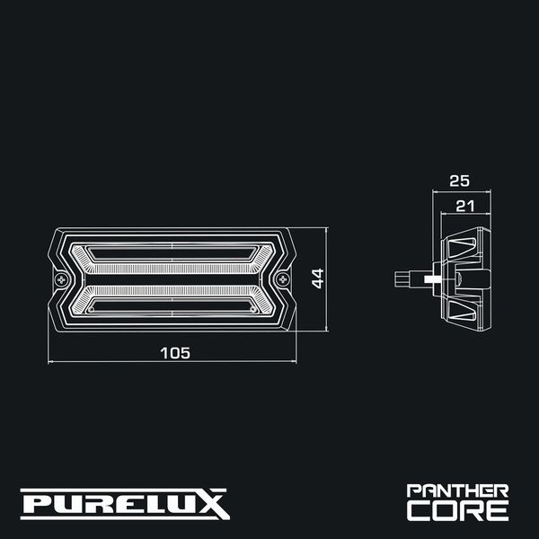 The Core lights feature two light bars running across the lens, with a unique design, high-performance LEDs and even light distribution that will catch your eye from afar. In addition, the sleek black body and dark optics blend the light into any vehicle's structure, ensuring a clean installation. Thanks to the low power consumption, multiple lights can be installed on the same vehicle without any worries, and the Core series lights can also be synchronized to work harmoniously with each other. This ensures a uniform, stylish and finished lighting for the vehicle, with the Purelux Panther Core at its core.