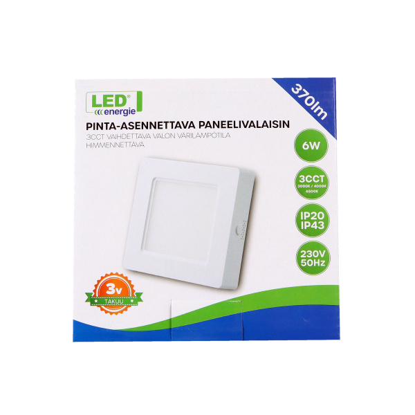 Led Energie Dimmable Square is a square surface-mounted spotlight suitable for dry and damp spaces in the home. The lamp is very easy to install, as it has a built-in operating device that is connected directly to a 230V mains with its own connection cable. You can choose a color temperature of either 3000, 4000 or 6500 K before installation with switches behind the light to create the right light and atmosphere to your liking. The light can also be dimmed with a Triac dimmer that allows you to adjust the brightness as you like. The lamp is available in three different sizes and power, choose the appropriate option that suits you from the product options. Manufacturer's reported luminous flux 370, 900 or 1400 lumens, color temperature 3000, 4000 or 6500K.