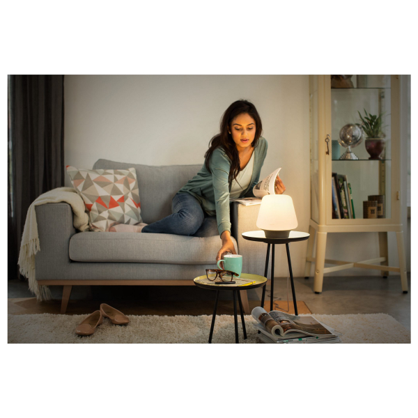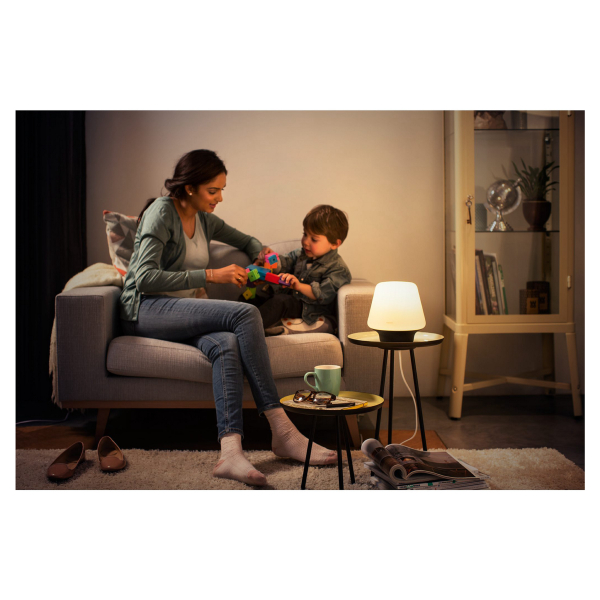Classic stylish table lamp with Philips Hue smart LED lamp with E27 socket. Controlled with the phone, Hue Bridge or included dimmer. Declared luminous flux 800 lm, color temperature 2200 - 6500 K. Protection class IP20.