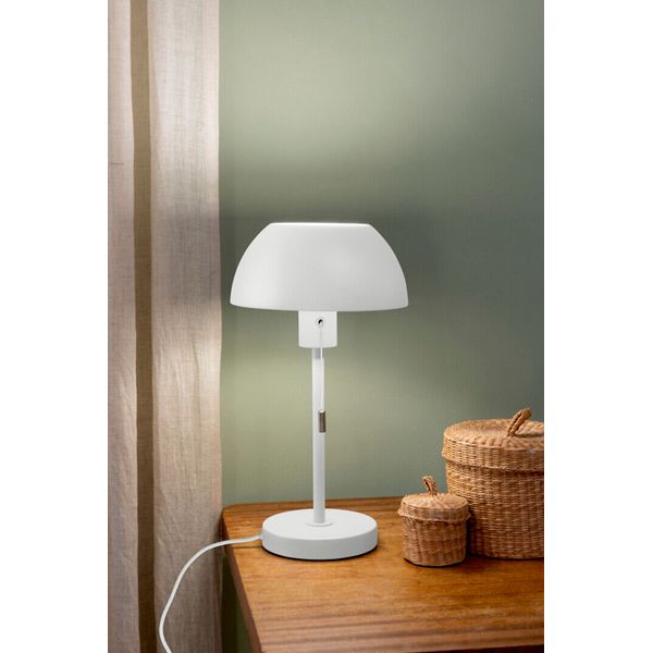 A stylish, Scandinavian-style table lamp that brings a modern and understated addition to the room. Works with a replaceable E27 bulb (not included), available in black or white. IP20 rating.