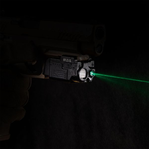 The Nitecore NPL25 GL is a compact combination of a weapon light and laser sight that produces 900 lumens of light output and a beam range of up to 216 meters. The dual switch allows for different weapon grips and use of the light from both sides. Compatible with GL and Picatinny rails.