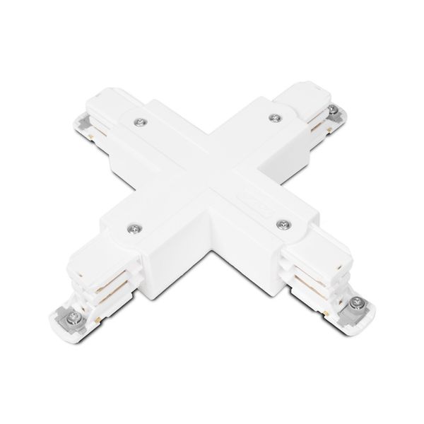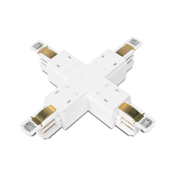 Combined X-connector and input box for Global Trac 3-phase track. Allows power supply and branching of the track in four different directions. Available in black or white.